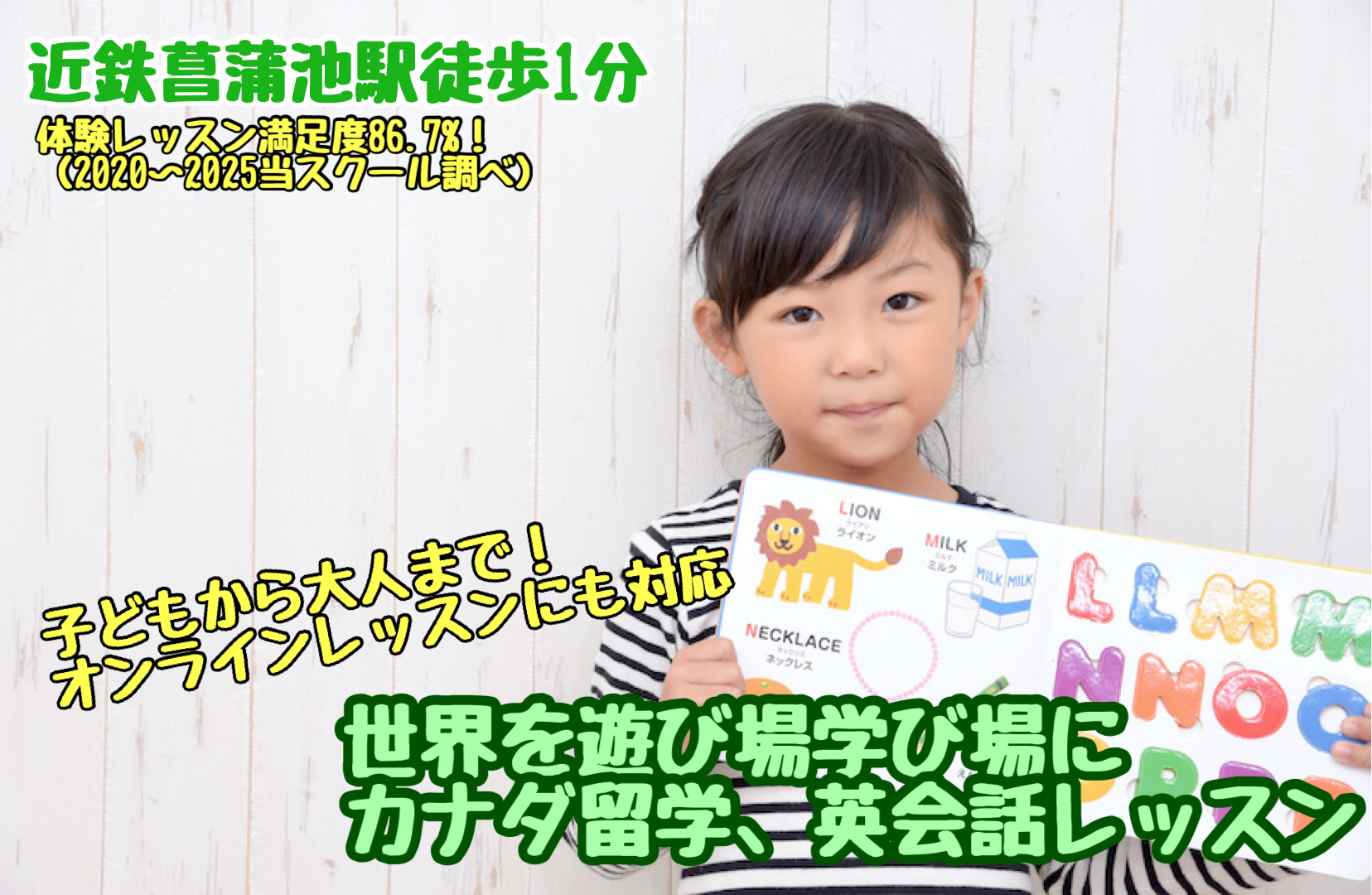 全世界で使用されている、Jolly Phonicsを使い、たった40分の無料体験で街角の英語の看板に興味を持って読もうとする気持ちができるように。